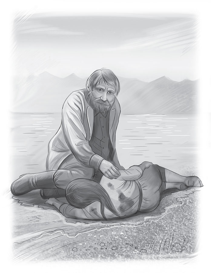 Макарыч долго потом сидел на берегу и не выпускал её из объятий. Не давал никому её у него забрать, чтобы похоронить. Гладил её волосы, лицо. Обнимал, разговаривал с ней как с живой. Тихо плакал.