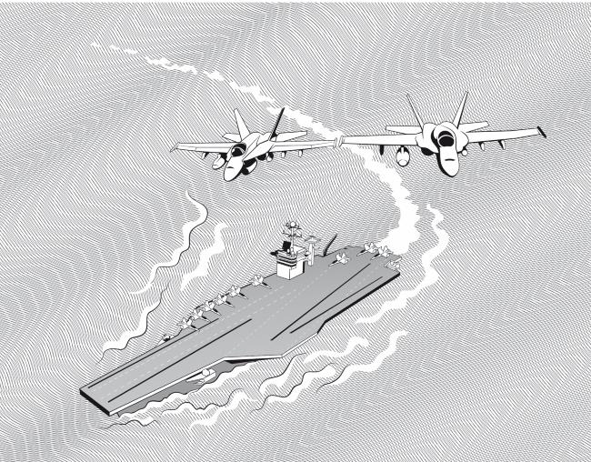 С борта подлетающего к кораблю небольшого вертолёта, обычно доставляющего экстренную почту, был чётко виден каждый самолёт, стоящий на палубе авианосца, так же, как и многочисленные военнослужащие, которые сновали повсюду, выполняя каждый свою работу.