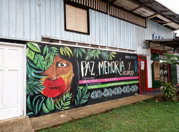 На улицах Боготы, в районе Канделария, на стенах домов много граффитти с амазонскими этническими сюжетами. Здесь изображен ребенок нукак-маку