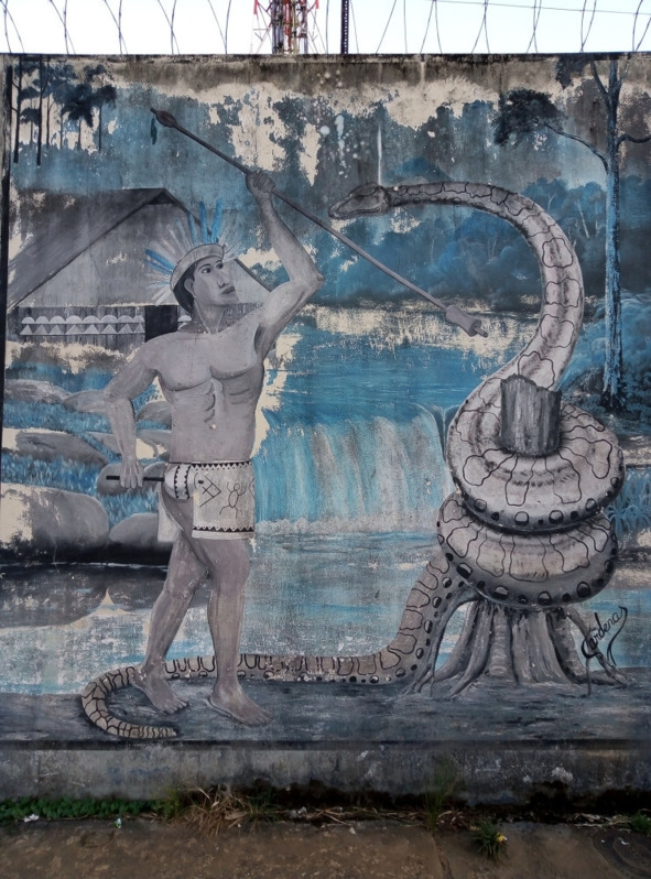 …предков коренных народов принесла на себе в регион большая анаконда, имевшая форму каноэ, в котором сидели люди