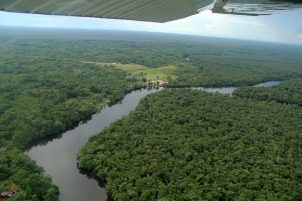 Взгляд с высоты позволяет оценить детали рельефа местности, которые плохо различимы с земли. Сложно понять, но, как мне показалось, в окрестностях Миту много вторичного леса. Чем дальше от Миту, тем лесной покров становится гуще, над девственным лесом встают горные плато – Серро-Аси, Серро-Гуакамайо и Серро-Мороко. Они вертикально вздымаются над джунглями, их высота достигает несколько сот метров. Впечатляющее величественное зрелище! Местами, на возвышенностях, лес отступает и образуется что-то вроде высокогорных лугов.