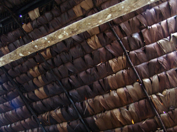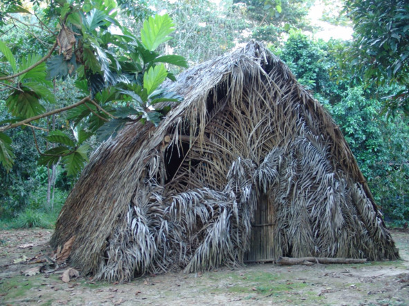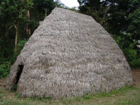 Рядом с хижинами ягуа построили небольшую малоку с двумя входами, ориентированными друг против друга. Индейцы говорят, что раньше малоку возводили гораздо больших размеров, и она имела четыре входа. Скромным размерам малоки есть свое объяснение. Как и у бора в Пебасе, этот общинный дом служит местным ягуа своеобразным клубом, в котором они встречают гостей или просто собираются вместе, а не постоянным жилищем. Ягуа предлагают нам развесить гамаки в малоке.