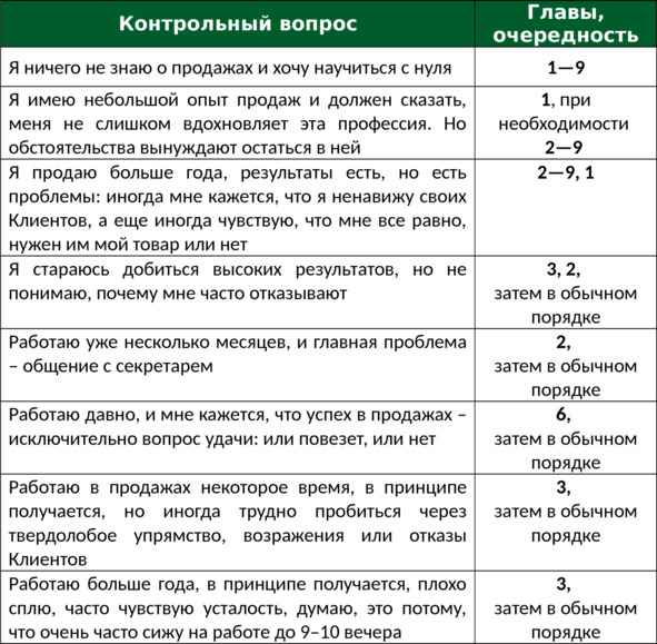 Если ситуация в одной из граф выше полностью совпадает с Вашей текущей ситуацией, читайте книгу в рекомендованном порядке.