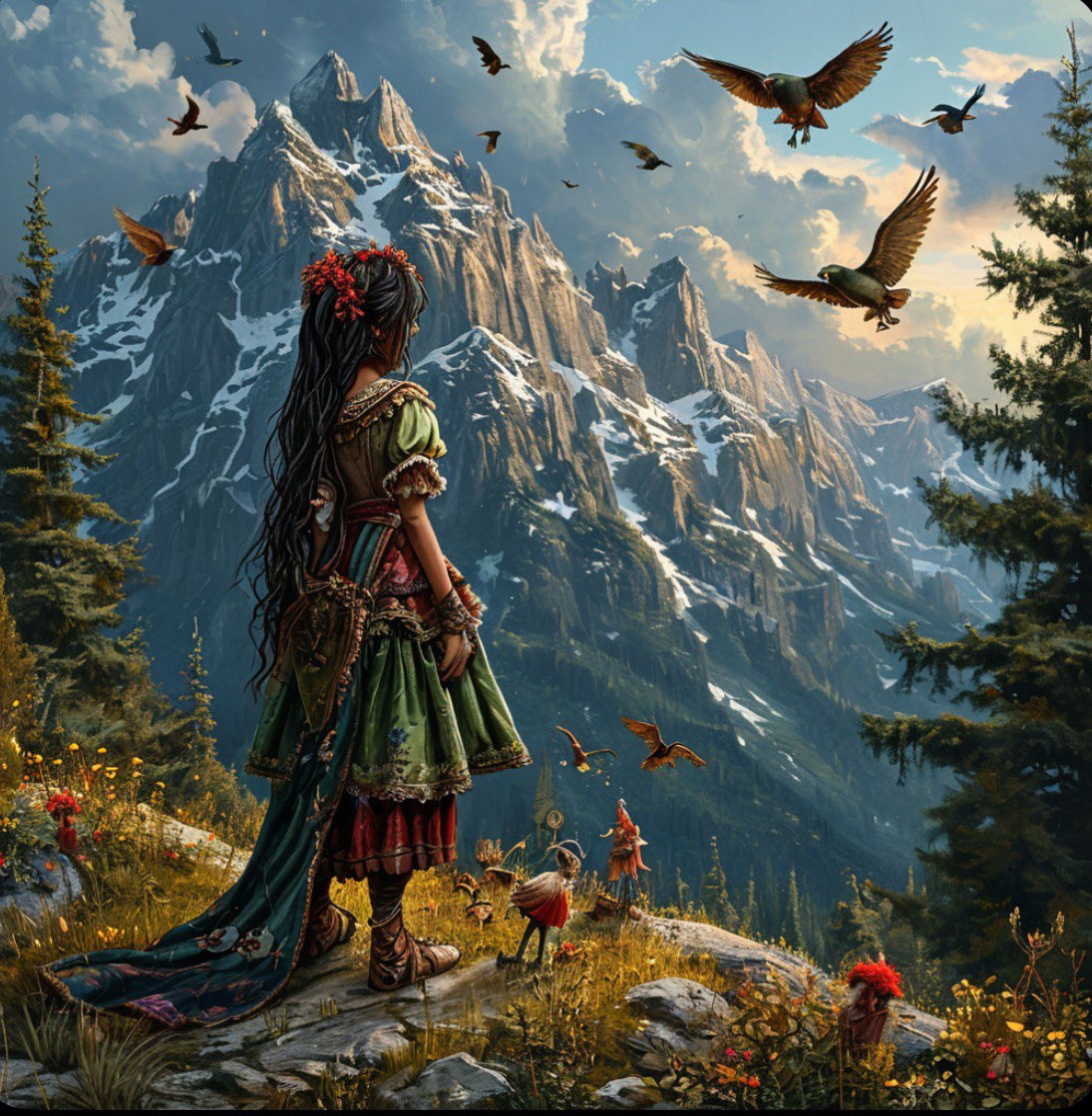 В то самое время, когда кузнец Торин разговаривал со стариком, Аллара стояла в тени деревьев, притаившись и слушая каждое слово. Её изумрудные глаза широко раскрылись от удивления, когда она поняла, что её отец оказался втянут в опасную игру с тёмными силами. Сердце её сжалось от страха за отца, но также и от решимости помочь ему. Она знала, что не может оставаться в стороне.