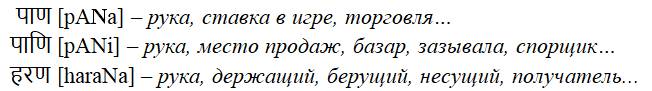 Как и следовало ожидать, древним предком является праиндоевропейский корень *an – (m)an(о), (h)an(d), (r)an(ka). При этом женский род – принадлежность и романской mano, и германской hand, и русской рѪкa (rankà/рука). Во всех случаях общему корневому созвучию [an] предшествуют различные призвуки, а это значит, что начальный призвук суть величина непостоянная и переменная; скорее всего, и вовсе наносная. Этот же вывод мы имеем все основания распространить и на послекорневые наросты – предполагая различного вида аффиксальные морфемы, как-то: суффиксы и флексии.