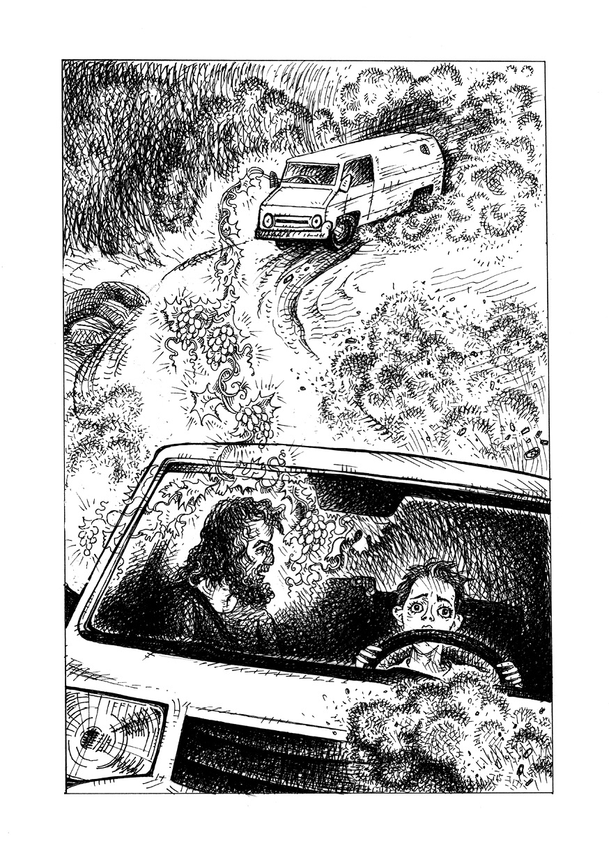 Раздался сухой треск, и заднее стекло рассыпалось мелкими осколками. Профессор резко вывернул руль, сворачивая на дорогу, уходящую в виноградные посадки под прямым углом. Они запрыгали по ухабам, поднимая клубы пыли.