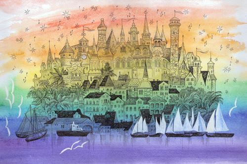 Старинный дворец с башенками и шпилями, украшенный барельефами и скульптурками крылатых рыб и зверей, казался чудной книжной иллюстрацией.