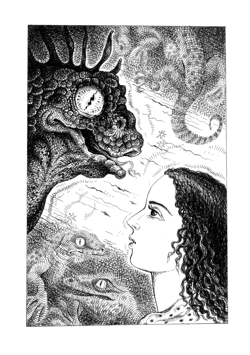 Ящер смотрел на человека не отрываясь и не моргая, и Китти показалось, что у него зигзагообразные, как у морской каракатицы, зрачки. Глядя в упор, он заговорил, но девушка поняла это не сразу. Невероятное существо челюстей почти не размыкало, и набор издаваемых звуков едва ли можно было назвать речью. Но в цокоте, щелчках, посвистываниях и шипении невольно угадывались осмысленные интонации, и она изо всех сил стала их ловить, словно от того, насколько усердно это делала, зависело ее спасение.
