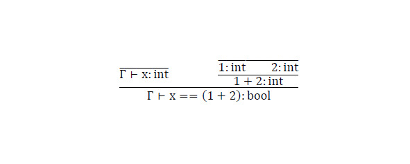 Если в типовой среде Γ выражение e1 имеет тип int, а выражение e2 имеет тип int, то тип выражения a + b также будет int. Это можно записать следующим образом: