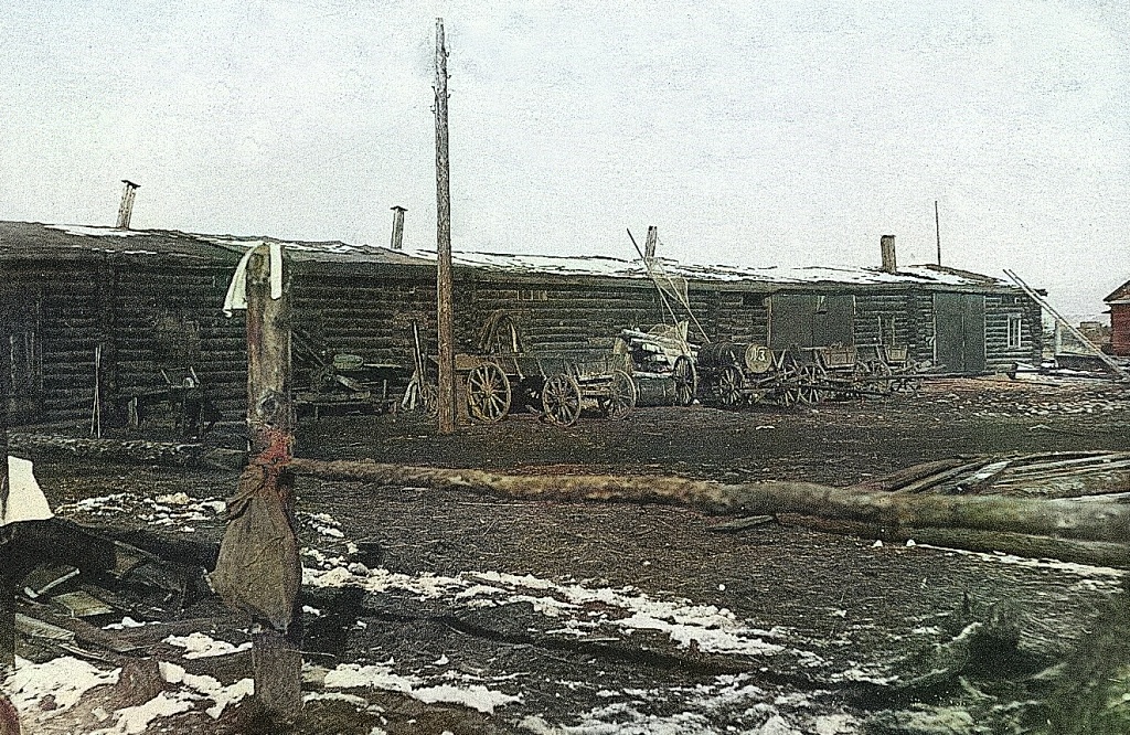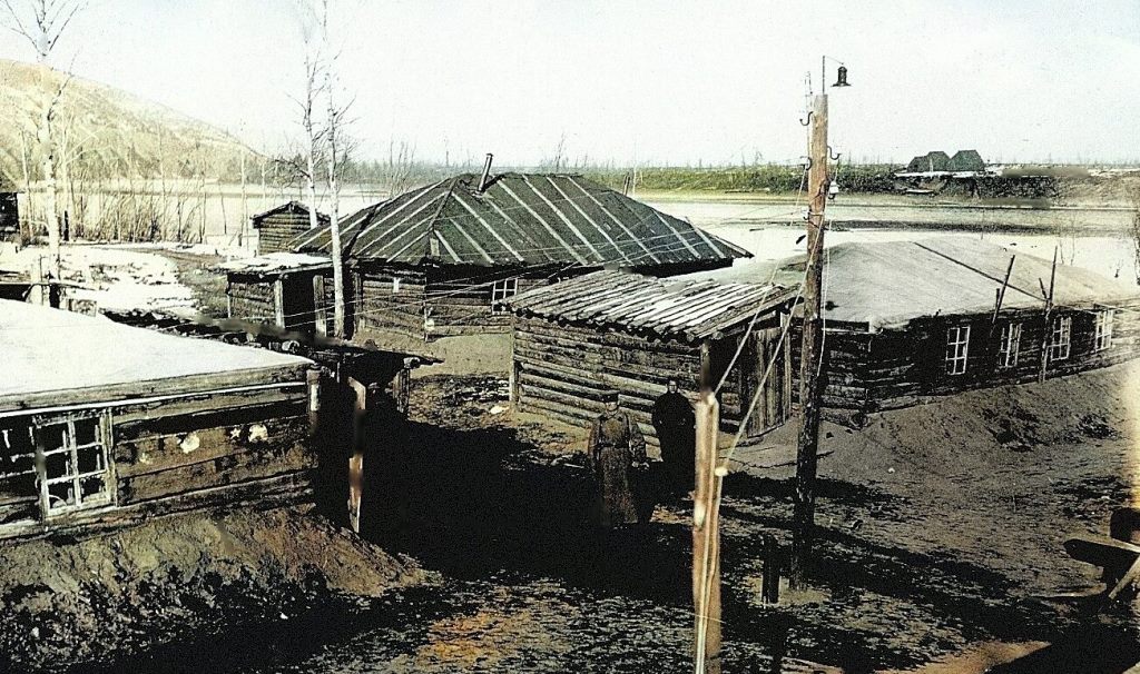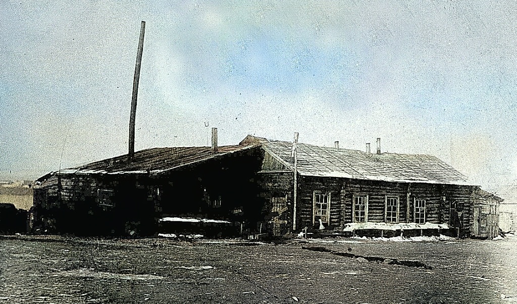 Фото №6в (архив Дорожевца А.Н.). Весна 1938 года. – Пекарня и кочегарка Колымского полка на левом берегу Колымы.
