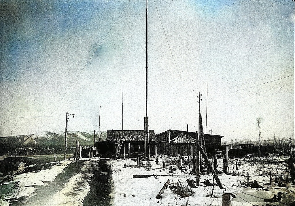 Фото №21 (архив Дорожевца А.Н.). 1938 г. – Полковой радиоузел возле Колымского моста.