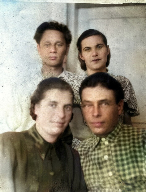 Фото №97 (архив Мицкевича И.В.). Декабрь 1953 года. Первые учителя Дебинской семилетней школы. В верхнем ряду – Клара Тимофеевна Бурьянова (в будущем Мицкевич), директор школы и учитель русского языка и литературы. Имена других учителей – Евгения Иосифовна (вероятно, учитель начальных классов), Василий Трофимович, Михаил Гаврилович. Может быть, кто-то знает их фамилии.