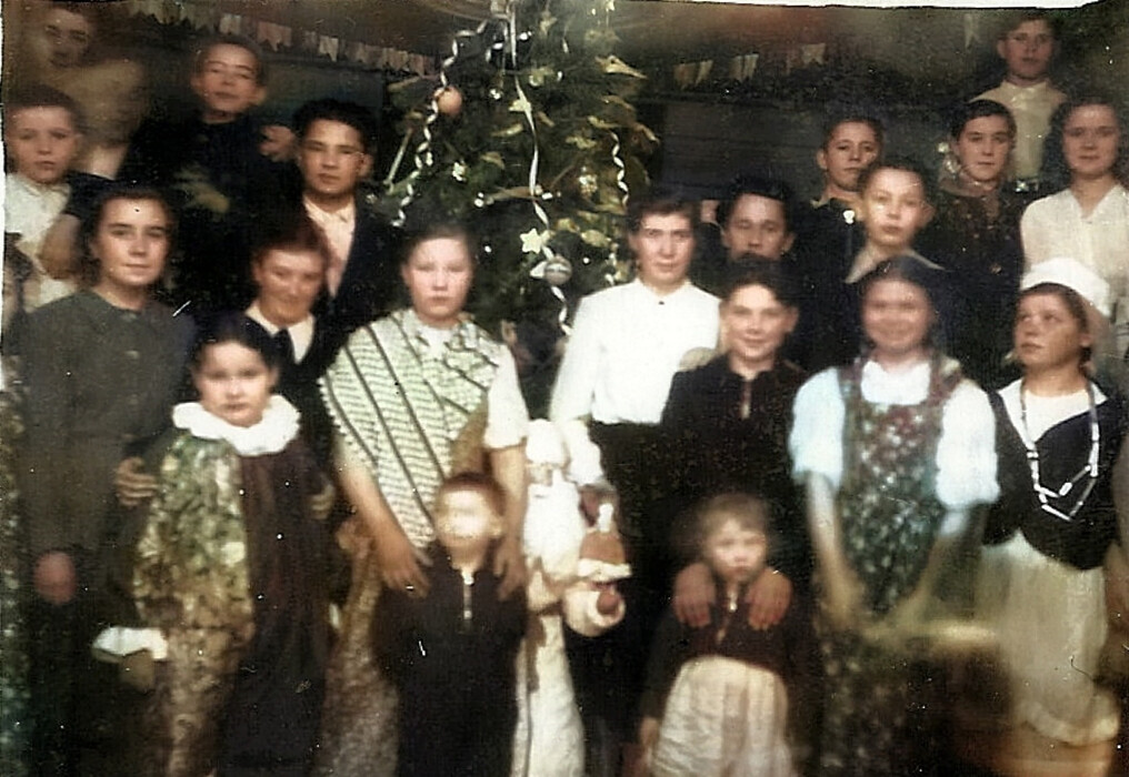 Фото №99 (архив Мицкевича И.В.). Дебин, январь 1954 года. – Празднование Нового года в здании школы.