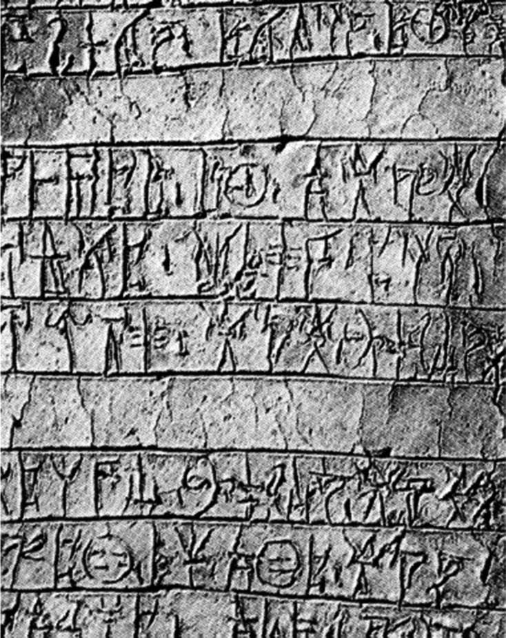 Образец линейного письма из Пилоса. Напоминает изображения геометрического периода вазописи. Возможно, утраченная письменность оставила свой след в ранней вазописи