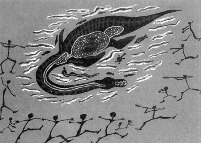 Изображение динозавроподобного существа, сделанное австралийскими аборигенами