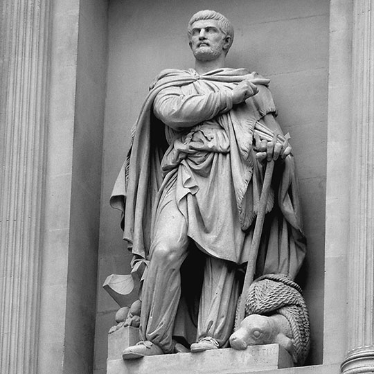 Скульптура Пифея на фасаде здания биржи в Марселе