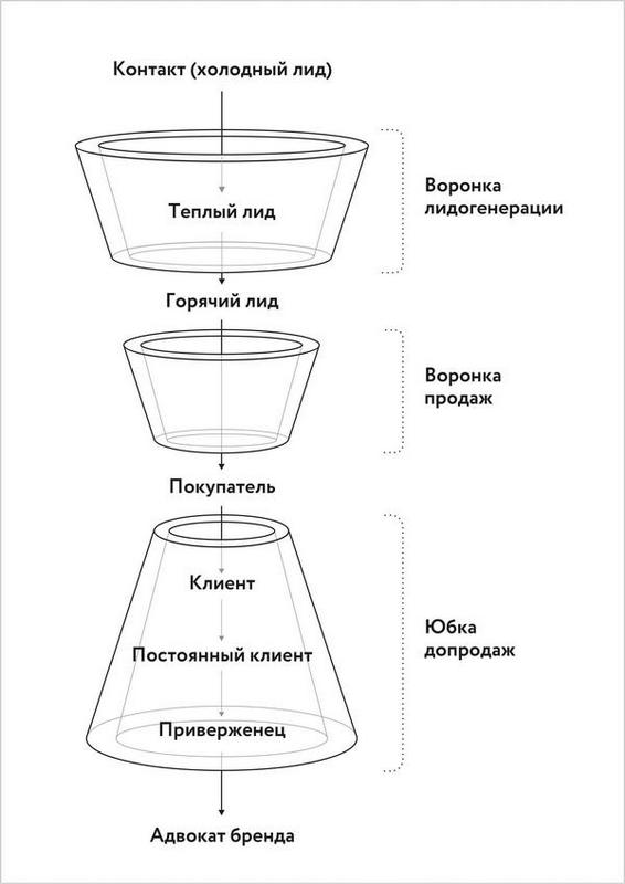 В этой же книге вы сможете прочитать, как совместить Воронку лидогенерации, за которую отвечают маркетологи, и Воронку продаж, за которую отвечают продавцы.