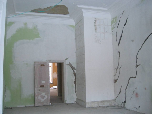 Трещины в стенах библиотеки. В глубине – бывшая «кружевная спальня». Фото автора