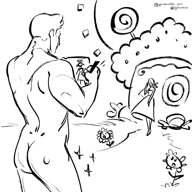 Достав блокнот из кармана кофты, молодой человек принялся за новый рисунок. Женщина скрестила руки на груди, ожидая, как теперь облажается её создатель.