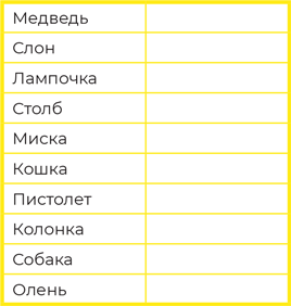 Тест 1. Не подглядывая в список, запишите все слова, которые вам удалось запомнить. И здесь очень важно записывать слова по порядку – так, как они были написаны выше.