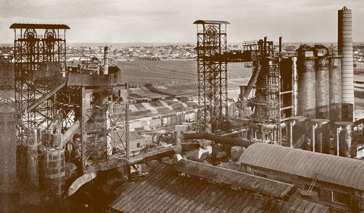 В 1916 году предприятие достигло максимального выпуска чугуна, стали и проката. Здесь полыхали жаром три доменных и шесть мартеновских печей, громыхали металлом крупносортный, несколько среднелистовых и мелколистовых станов; напряженно гудели фасоннолитейный, кузнечный, транспортный, механический, строительный, труболитейный и карбидный заводы (цеха). Сырьем и топливом их снабжали девять угольных шахт.