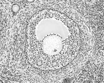 К моменту наступления половой зрелости в каждом яичнике содержится несколько тысяч фолликулов с молодыми, то есть незрелыми, яйцеклетками.