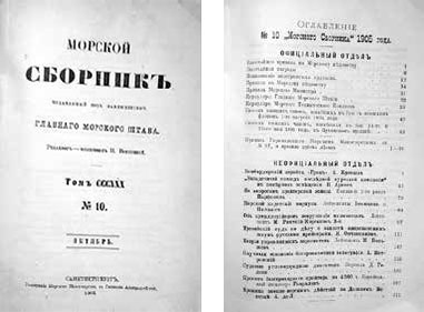 На пожертвования неравнодушных жителей Санкт-Петербурга в городе Москве были приобретены 4 оригинальных журнала «Морской сборник» 1905 года. В этих номерах опубликованы имена российских военных моряков, погибших в Цусимском сражении. В журнале «Морской сборник» № 10 за октябрь 1905 года было опубликовано первое подробное описание Цусимского сражения на русском языке.