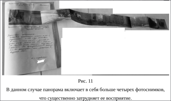 – А вот почему мне нужно переделать ориентирующую фотосъемку я не понимаю, – вздохнула Сима, разворачивая свою панораму. Панорама легла длинной узкой лентой, там было не меньше 15 склеенных в ряд фотоснимков (рис. 11).
