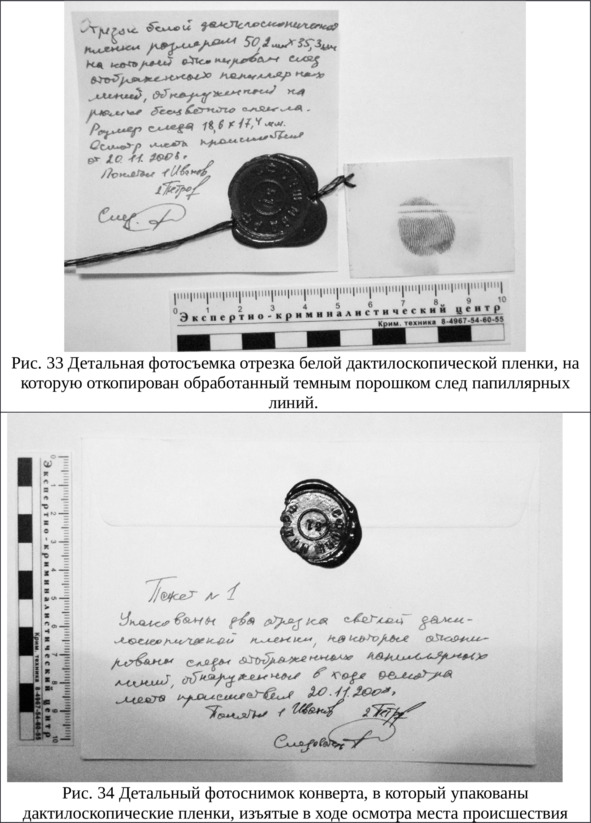 – Получается, – заключила Серафима, – после того как объект упакован, упаковка снабжена пояснительной надписью, подписана понятыми, специалистом и следователем, она должна быть сфотографирована по правилам детальной фотосъемки (рис. 34).