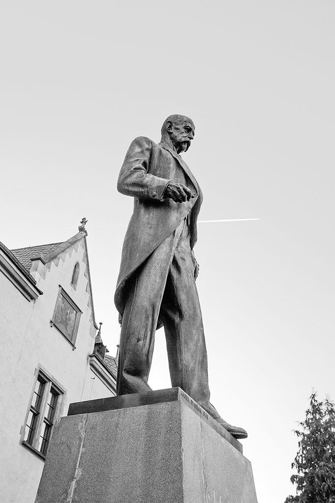 Памятник Томашу Масарику в Кутна-Горе (1938). Скульптор Карел Дворжак. Статую дважды демонтировали и переплавляли (нацисты и коммунисты). Обновлена в 1991 году