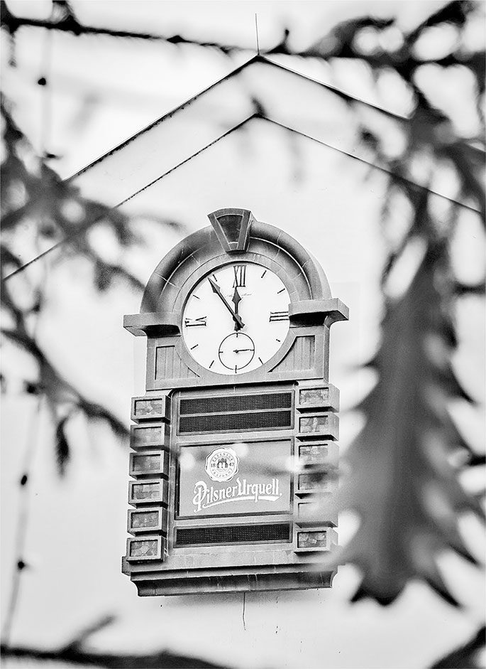 «Пивные часы» на стене старого корпуса завода Plzeňsky Prazdroj в Пльзене