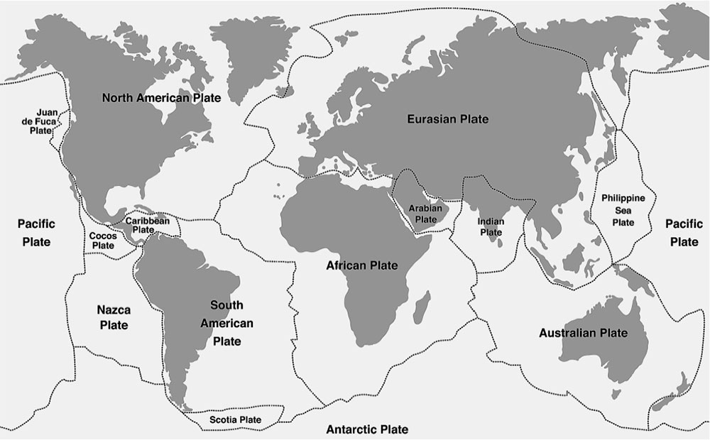 Существует 13 крупнейших литосферных плит, которые покрывают более 90 % поверхности нашей планеты и несколько десятков мелких. Плиты не спаяны между собой, а соединены своими неровными краями. Условно это соединение плит можно сравнить с зубчатым соединением столярных деталей.