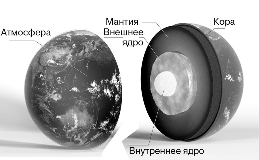 Наша планета состоит из трех слоев – коры, мантии и ядра. Мантию условно делят на верхнюю и нижнюю, а ядро – на внутреннее и внешнее, так что можно считать, что слоев не три, а пять.