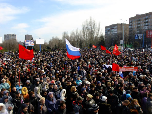 Проводим автопробег, с флагами РФ, СССР по городу и заезжаем в соседний городок, Мангуш. Проводим митинг, местные жители удивлены и морально не подготовлены выражать свое мнение. Получилось довольно комично, но все же шум мы устроили там хороший.