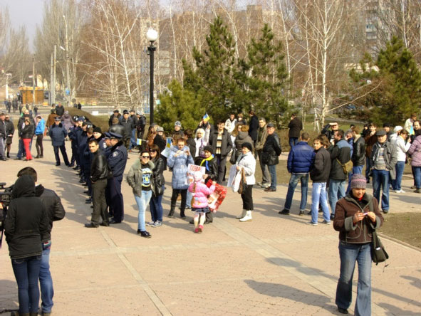Мы впервые сталкиваемся с организованным шествием националистов. Собравшись в честь юбилея Шевченко, они впервые в Мариуполе публично орут нацистские лозунги: «Украина понад усе», «Москалей на ножи».