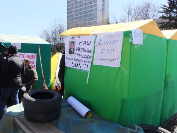Антон Папуш. Будучи лидером НОДа, он по началу активно вел пророссийскую риторику, проводил автопробег с флагами РФ, организовывал самооборону. Но несколько неизбежных в этой ситуации конфузов, например, погром микроавтобуса на митинге, организованном НОДом в середине марта, свел на нет его активность. В какой-то момент он пытался противопоставить себя Дмитрию Кузьменко, и тоже пытался назваться на отдельном митинге «народным мэром», успеха это не имело. Скорее, вызвало откровенное отторжение у подавляющей части участников протеста.