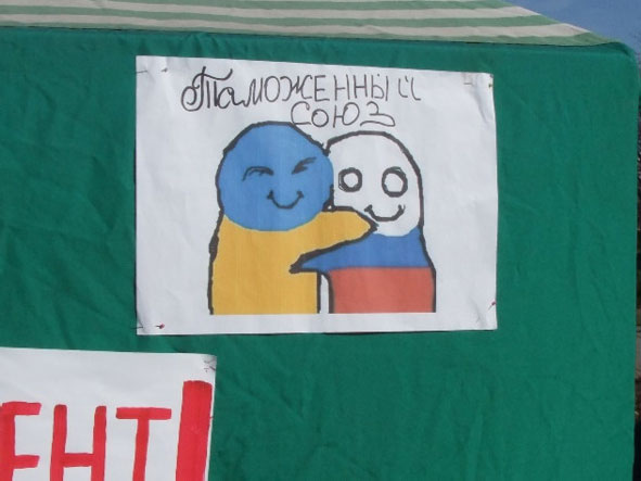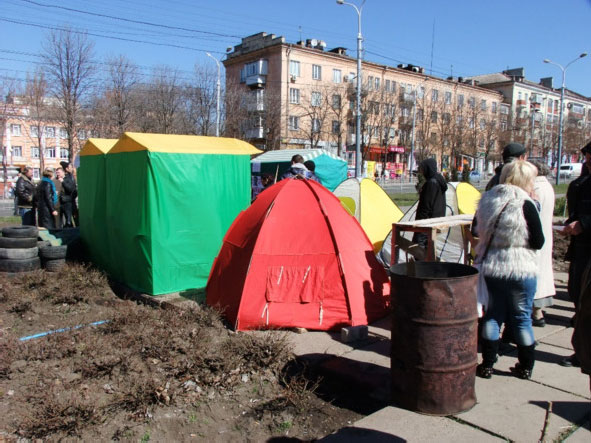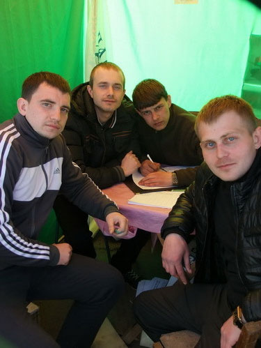 По возвращении, вижу, что одна палатка расширилась уже до городка. Пример заразителен! Знакомимся с новыми людьми. Хотя и так уже все знаем друг друга в лицо. После собрания, решаем, что АКМ и Гражданский Фронт Приазовья производят объединение. (комичность этого объединения была в том, что АКМ как организованной структуры не существовало, но оставалась надежда на ее создание) а дабы не спорить, называем лагерь – Патриоты Мариуполя. Начинаем собирать пожертвования.