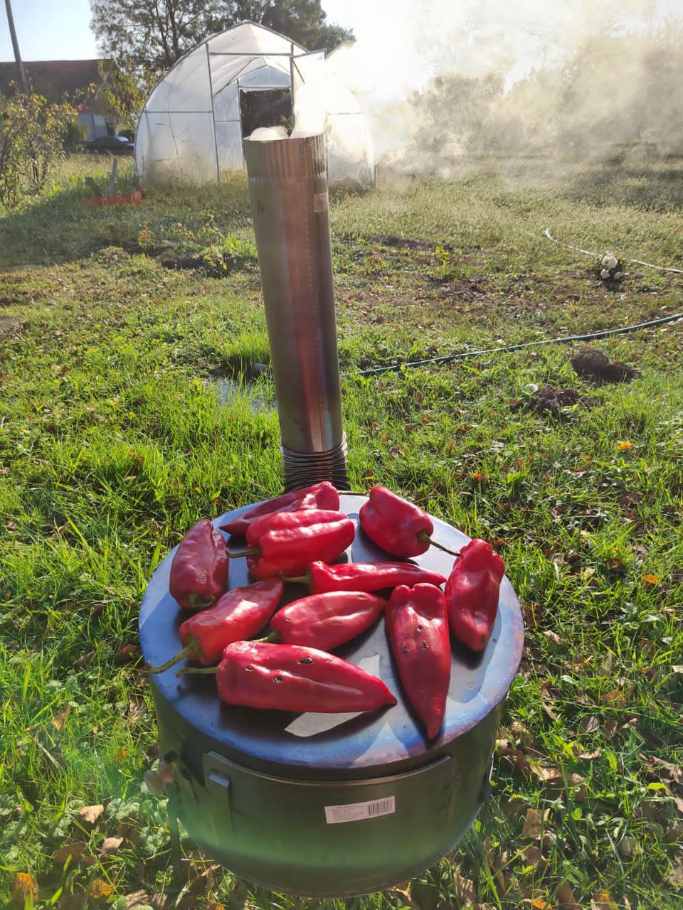 Шаг 1. Перец печем на плите (на гриле), а еще лучше на дровяной печи (рисунок 1) – запекаем до тех пор, пока перец не станет мягким, сморщенным (не большое подгорание – не страшно).