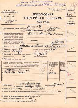 Анкета Всесоюзной партийной переписи 1926 г., заполненная Г.М. Маленковым. 1926