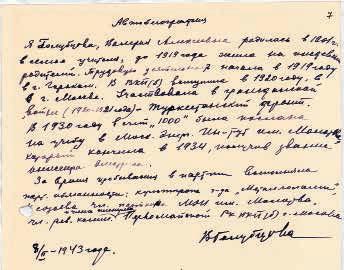 Автобиография В.А. Голубцовой. 8 февраля 1943