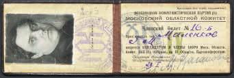 Членский билет № 16-Б Г.М. Маленкова как кандидата в члены Бюро Московского областного комитета ВКП(б), избранного на IV областной партконференции. 29 января 1934