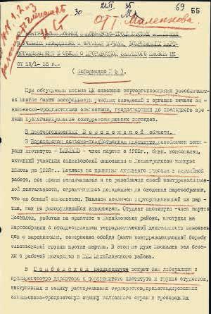Информационная записка Г.М. Маленкова «О контрреволюционных зиновъевско-троцкистских элементах в учебных заведениях и органах печати, вскрываемых парторганизациями в связи с проработкой закрытого письма ЦК от 18 января 1935 г.». 20 февраля 1935