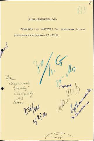 В результате кадровых перестановок повысятся не только статус Маленкова и его место в партийной иерархии, но и уровень голосующих по его вопросу. 4 февраля решение о его назначении примет Политбюро ЦК ВКП(б), а его члены поименно оставят в виде автографов свои решения. Список проголосовавших «за» возглавит Сталин36.