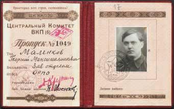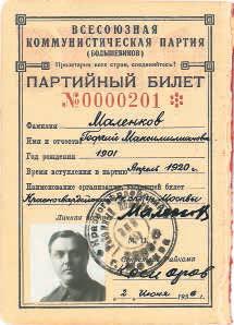 Сам Маленков пройдет успешно через кампанию обмена партдокументов и 2 июня получит партийный билет нового образца за № 000020151.