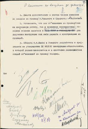 В мае 1937 года Маленкова ввели в состав Комиссии по выездам за границу. Всех выезжающих за границы страны, не важно, на постоянную работу или во временные командировки, обязывали являться в комиссию для получения инструкций, «как себя держать с иностранцами за границей»93. Причем фамилию Маленкова в проект впишет своей рукой непосредственно Сталин.