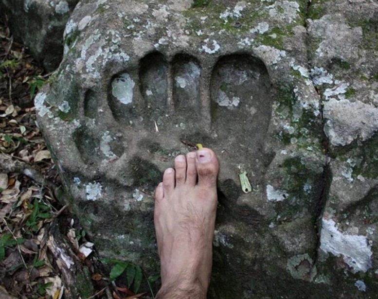 Китай. Так в Китае, в провинции Гуйчжоу, недалеко от деревни Пиньянь были обнаружены следы гиганта. Отпечатки этих следов были будто вдавлены в каменистую породу (см. фото 1).