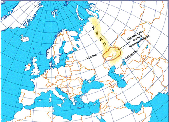 Южный Урал занимает срединное положение на материке Евразия. Здесь по реке Урал и Уральскому горному хребту проходит условная граница между Европой и Азией. Северо-восточные районы Оренбургской и южные районы Челябинской областей – это степь-лесостепь, обращенная к равнинам Западной Сибири и полупустыням Средней Азии. «Страна городов» расположена на водоразделе рек Урала и Тобола.