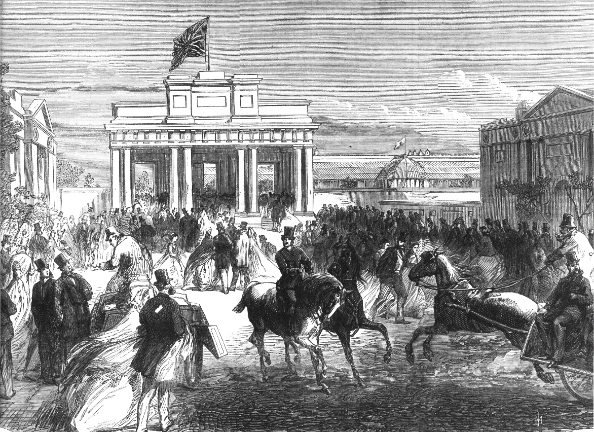 The Illustrated London News, May 6, 1865. The Dublin International Exhibition: Delivery of goods at the foreign and fine-arts' entrance