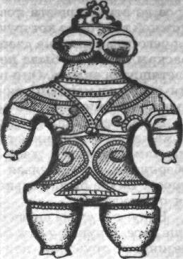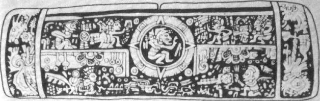 来自墨西哥的邪教物体上的圆形"宇宙飞船"。 宇航员到达地球的那一刻不是描绘在这里吗? 在"技术配件"动物中,花卉,水果是可区分的。
