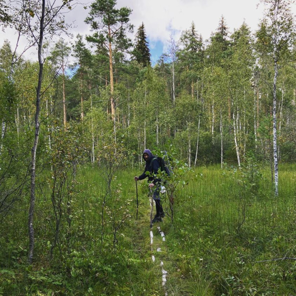 Проехали березовую рощу, – попетляли по сосновому лесу, въехали в лишайники, объезжаем топи, – комарье роем, а вокруг ковры, мягче и мягче. Деревья ломучие, хрупкие, сухие, и кочки вырастают, манят, но прячут за собой по краю болот островки с зарослями брусники, а дальше природные плантации клюквы. Трясина ползет по другой стороне. Глядишь, травка пошла яркая: пройтись бы босиком, да под ней топь бездонная – чаруса. В народе говорят «гиблое место».